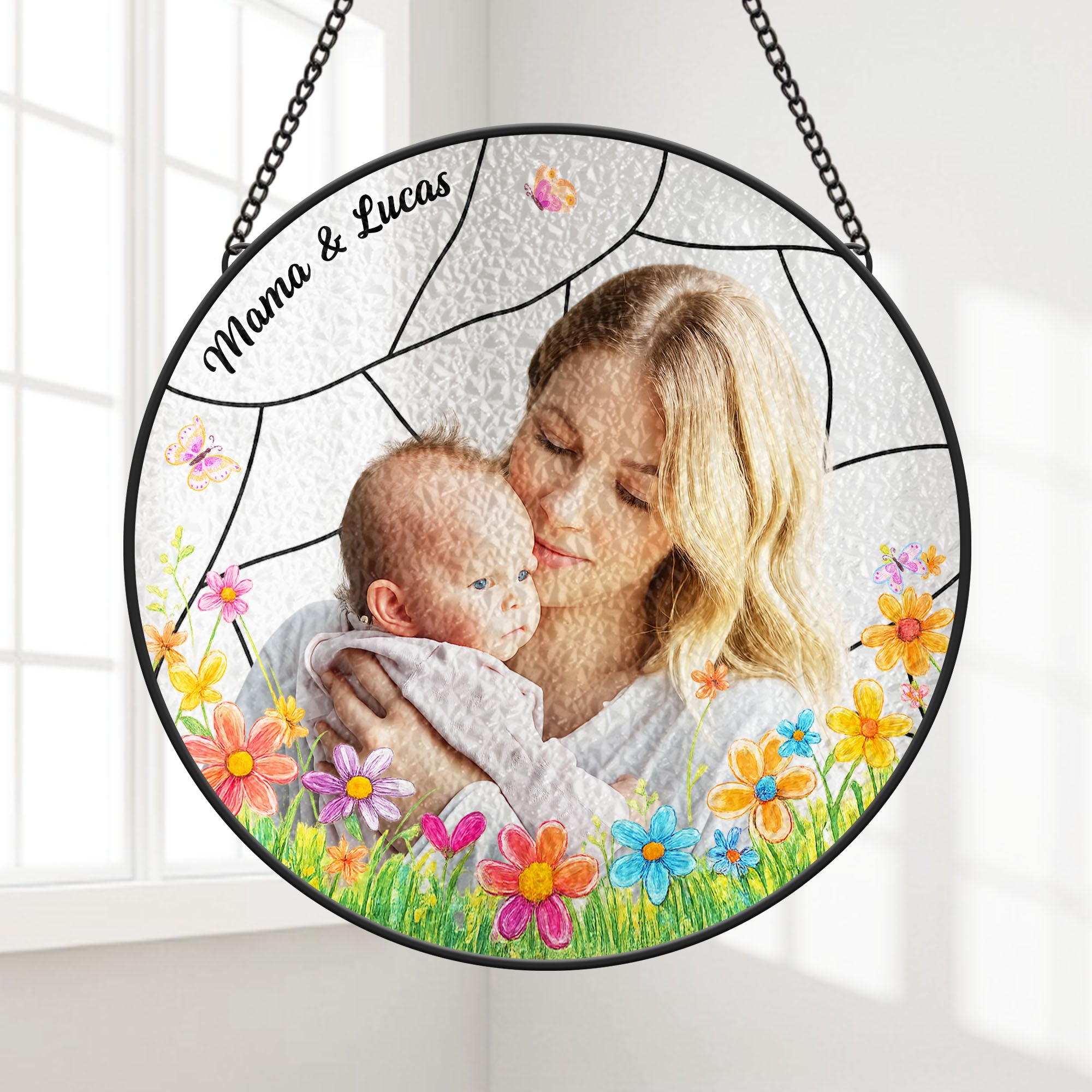 Attrape-soleil Personnalisé En Verre Photo - Mamie Maman Et Son Petit