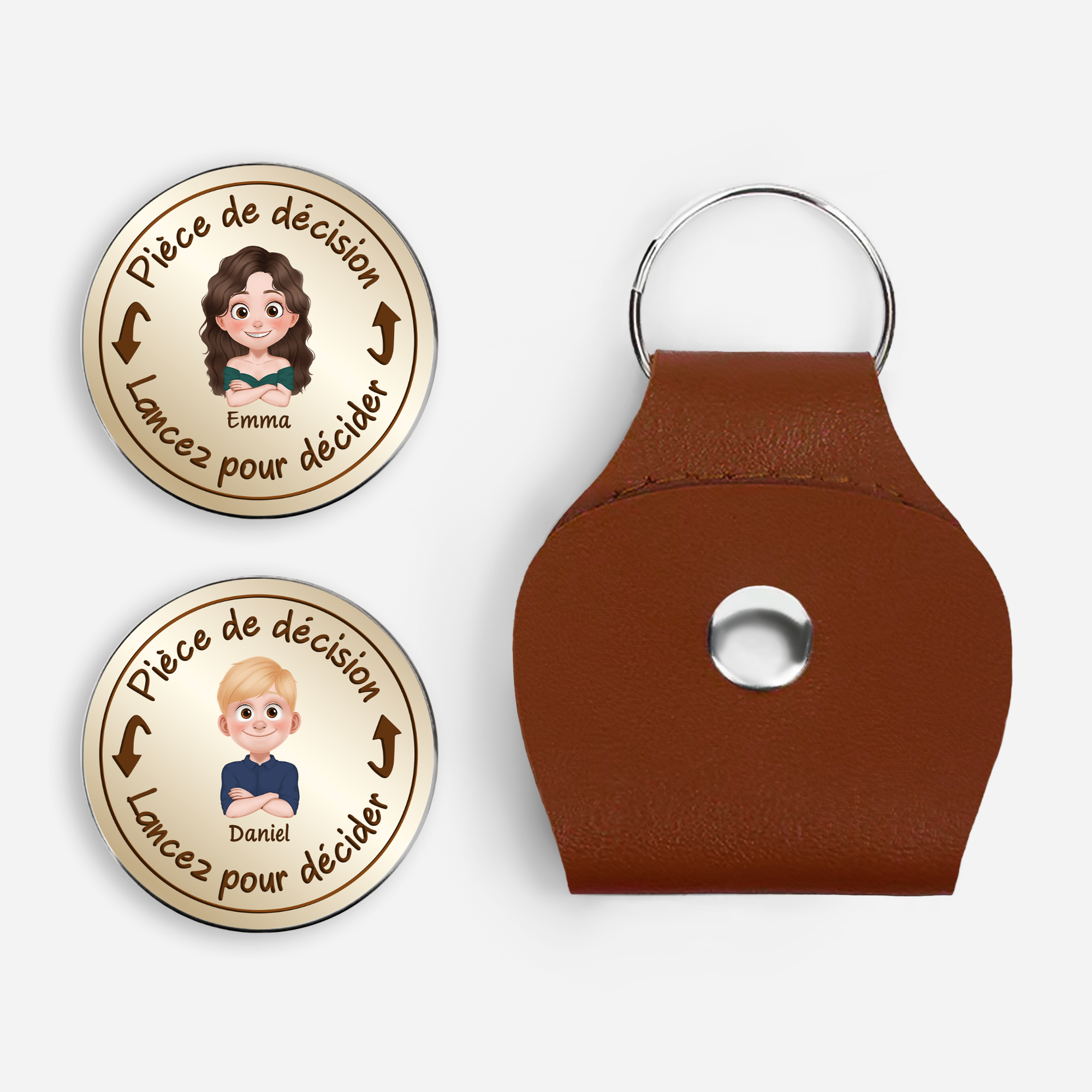 - Câlin de poche personnalisé : Ce charmant câlin de poche en cuir PU présente un extérieur élégant au format porte-clés, facile à emporter partout. À l’intérieur, un jeton rond en acier inoxydable peut être personnalisé grâce à une impression UV sur les deux faces avec un prénom, un message ou un motif unique pour une touche personnelle et pleine d’émotion.