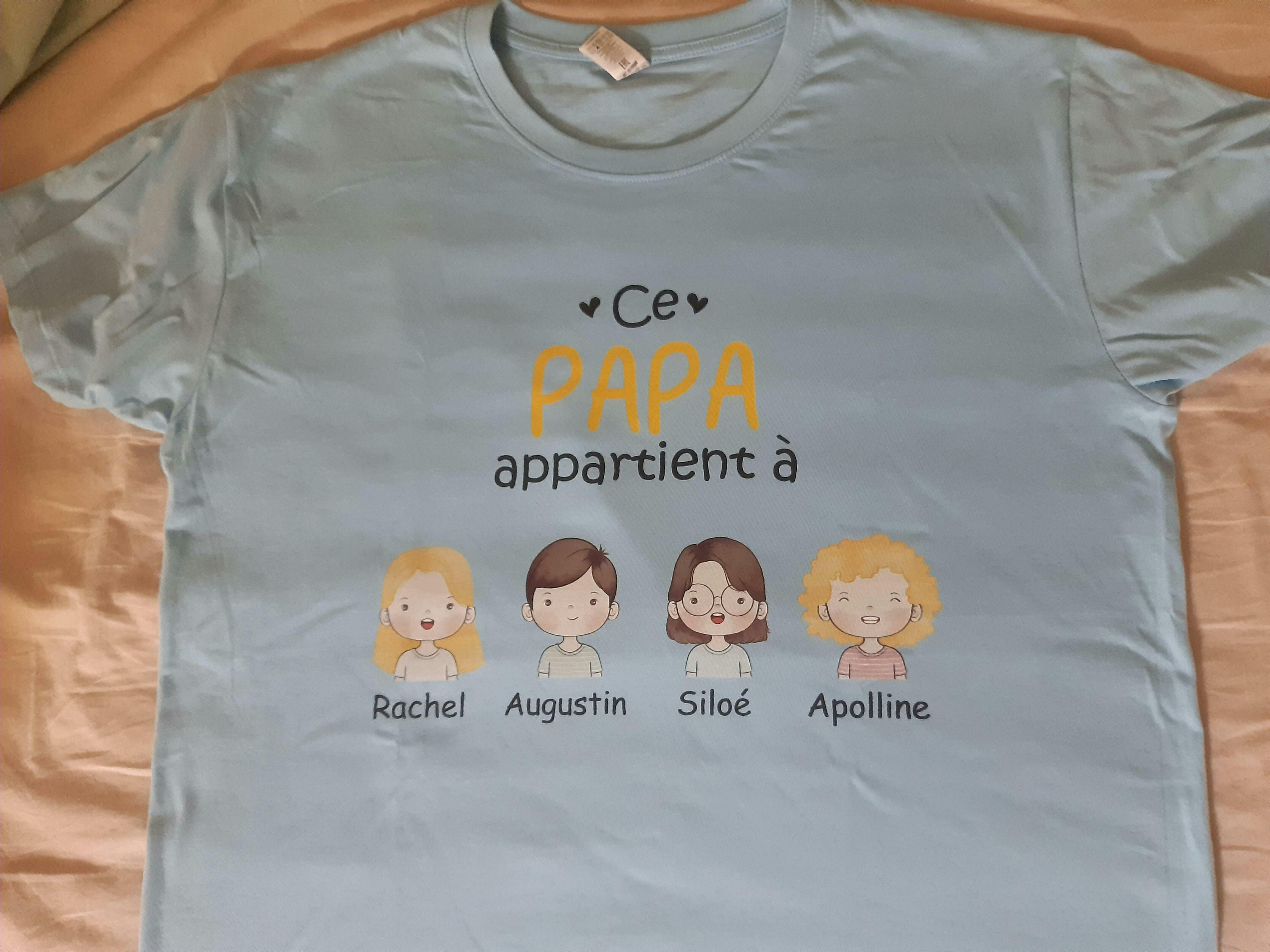 Ce t shirt personnalisé papa au message tendre « ce papi appartient à » est une idée cadeau parfaite pour la Fête des Pères, un anniversaire ou simplement pour faire sourire votre grand-père adoré. Ce tee shirt papy personnalisé mêle émotion et originalité, idéal pour célébrer les liens familiaux avec style.