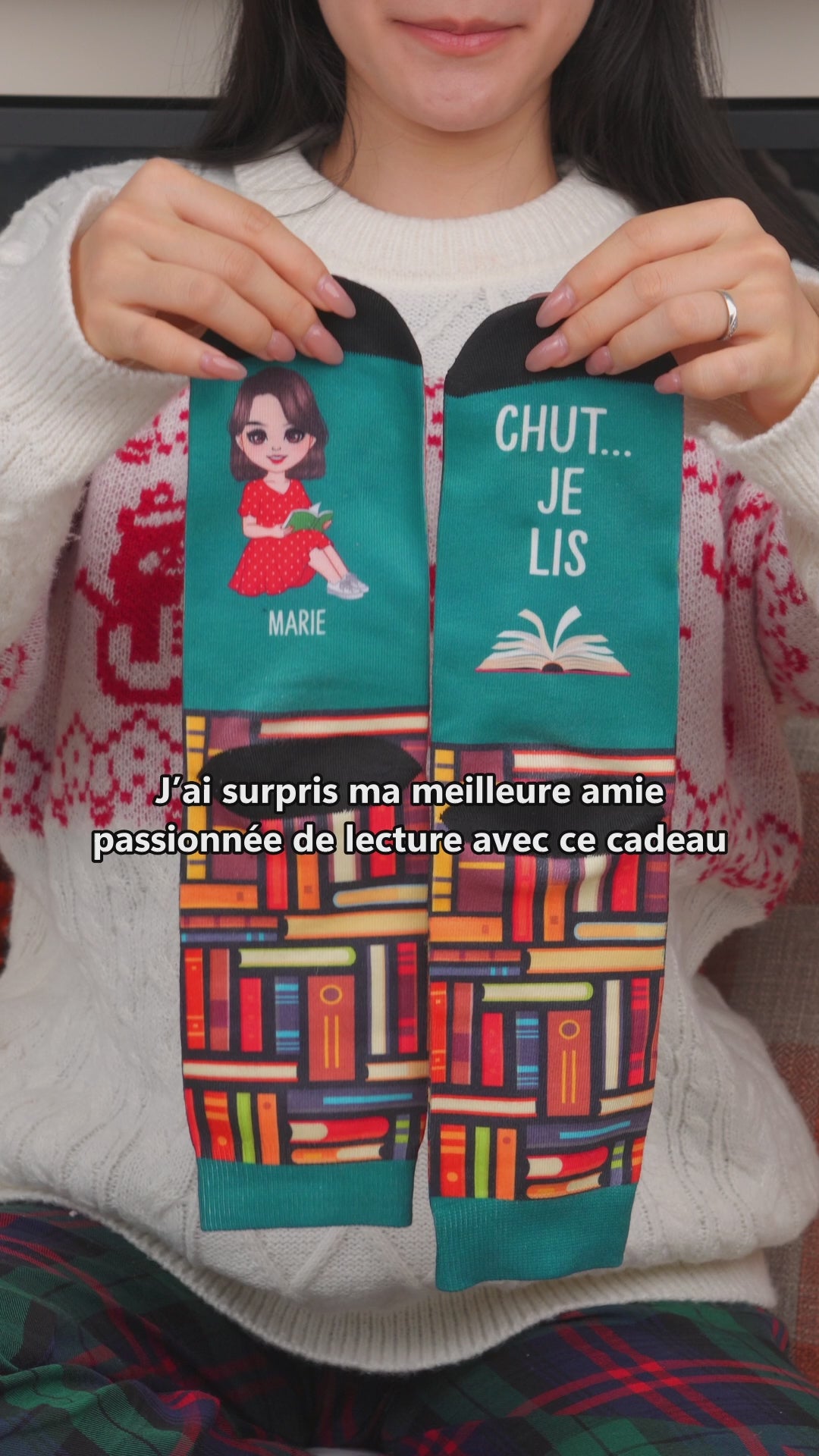 Ces chaussettes personnalisées “Chut… Je lis” sont parfaites pour les lectrices passionnées. Offrez‑les pour un anniversaire, Noël, ou simplement pour choyer quelqu’un qui adore les livres.