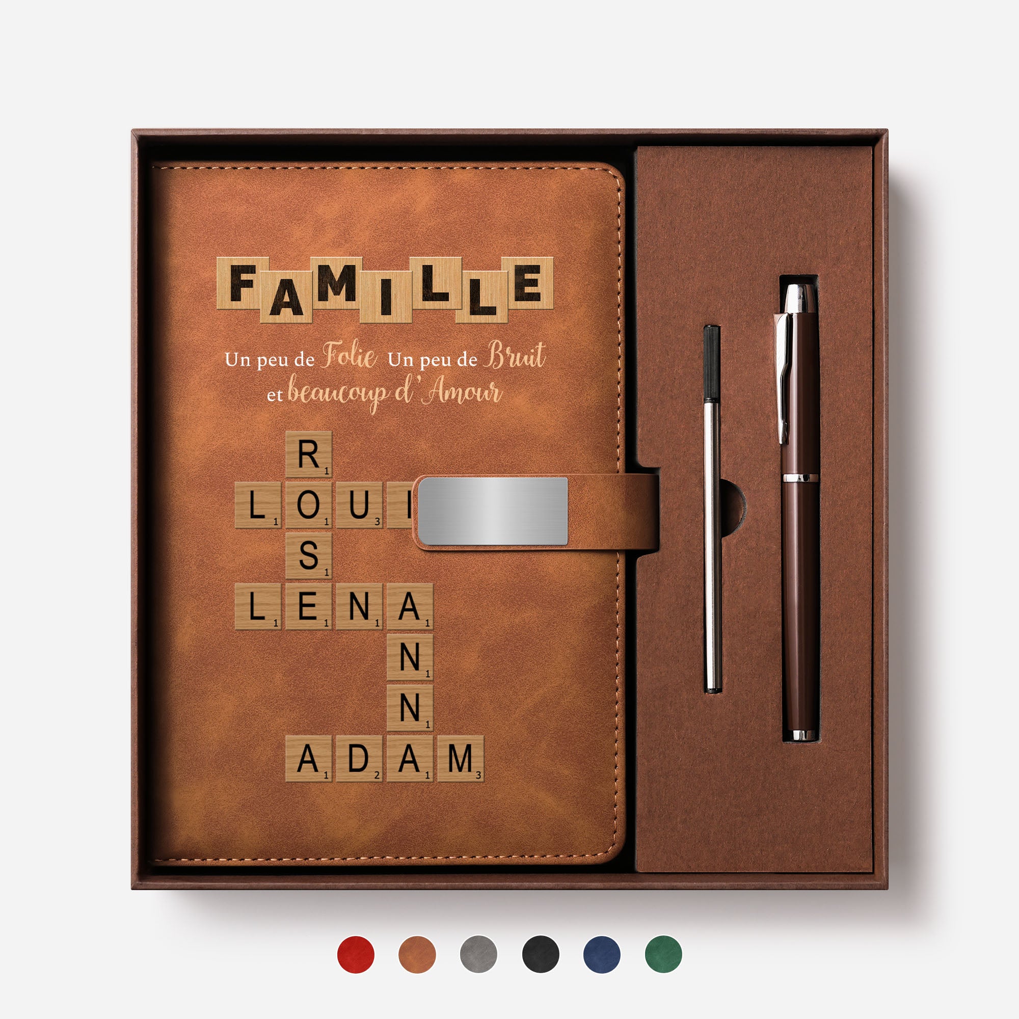 Coffret Carnet Cuir Personnalisé Imprimé UV - Amour De Famille Avec Mots-croisés