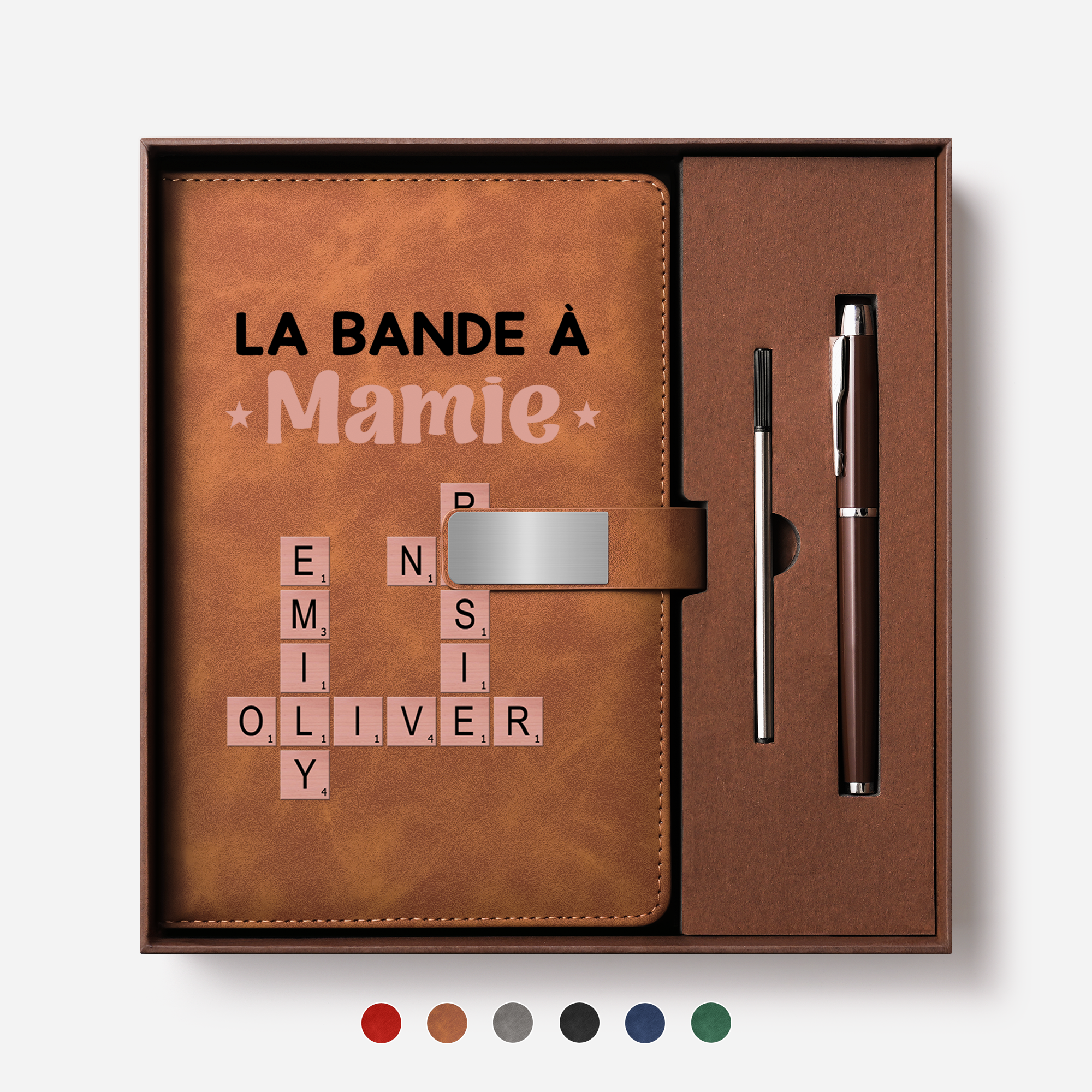 Carnet En Cuir Personnalisé Imprimé UV - La Bande À Mamie Avec Mots-croisés