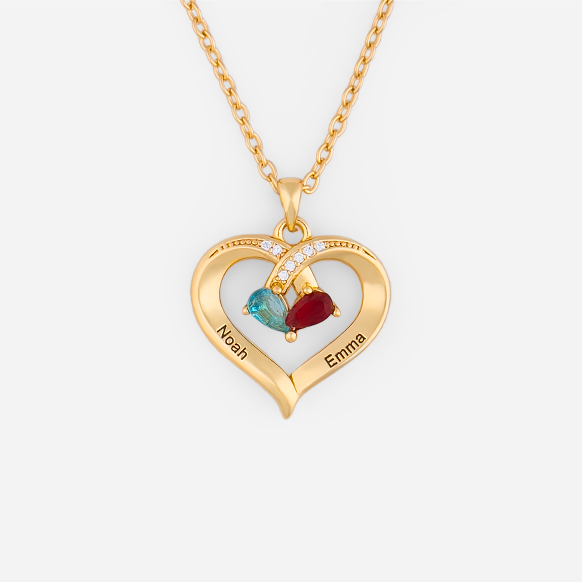 - Zone personnalisable : ajout de prénoms et choix des pierres de naissance sur le pendentif cœur.