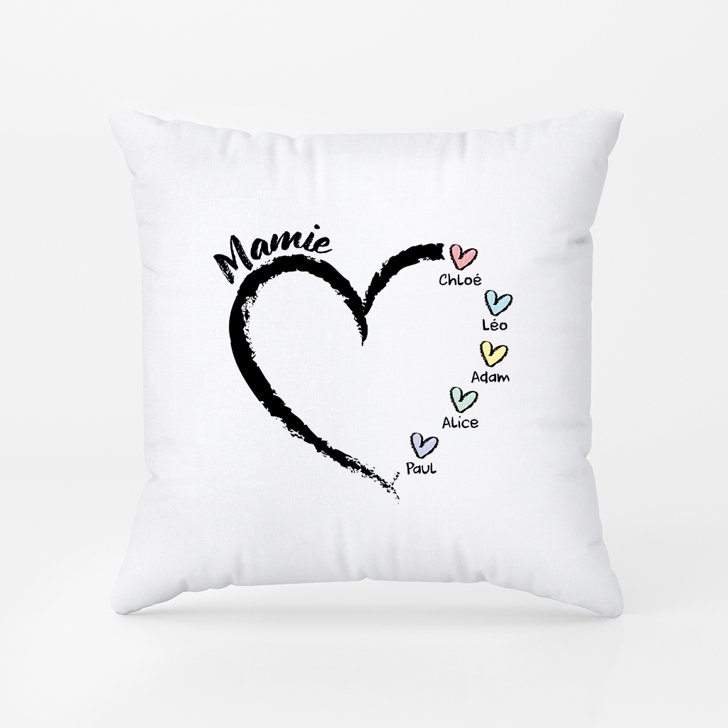 Coussin Personnalisé Maman - Mamie Cœur Pastel
