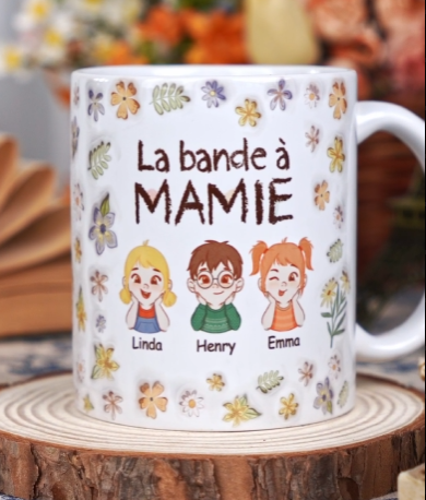 [Effet d'Impression 3D] Mug mamie personnalisé – La bande à mamie