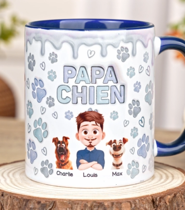 [Effet d'Impression 3D] Mug Personnalisé - Maman Chien - Version Rose-Bleu