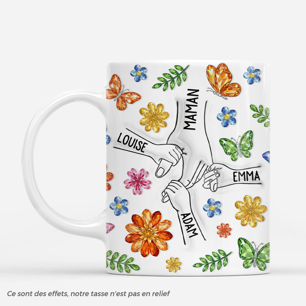 [Effet d'impression 3D] Mug Personnalisé - Mamie Maman Et Fleurs En Verre