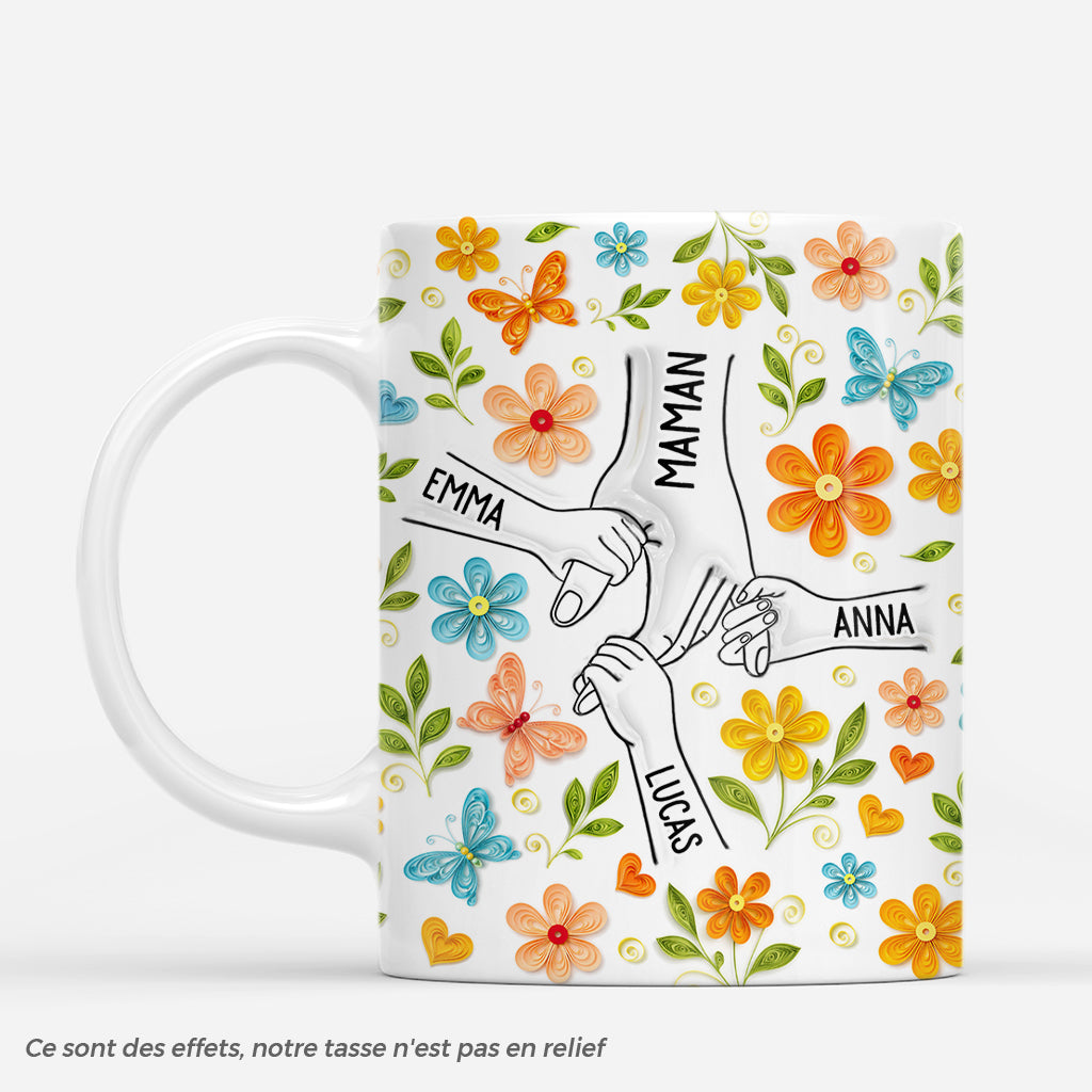 [Effet d'impression 3D] Mug Personnalisé Mamie Maman - Les Jolies Fleurs
