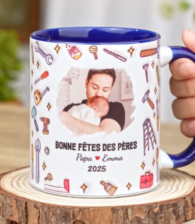 [Effet d'Impression 3D] Mug Personnalisé Papa Avec Photo - Bonne Fête Des Pères