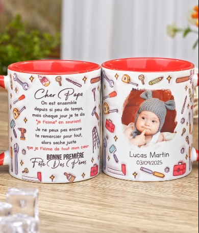[Effet d'Impression 3D] Mug Personnalisé Papa Avec Photo - Cher Papa Bricoleur