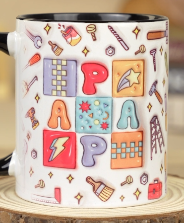 [Effet d'Impression 3D] Mug Personnalisé Papa Bricoleur - Design Patchwork
