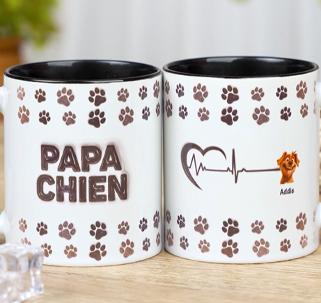 [Effet d'Impression 3D] Mug Personnalisé - Papa Chien Cœur - Version Noir