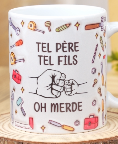 [Effet d'Impression 3D] Mug Personnalisé - Tel Père Tel Fils - Papa Bricoleur