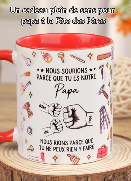 [Effet d'Impression 3D] Mug Personnalisé - Tu Es Notre Papa - Poings Et Outils