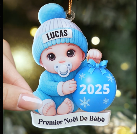 [Effet d'impression 3D] Ornement Acrylique Personnalisé Pour Enfant - Premier Noël Bébé