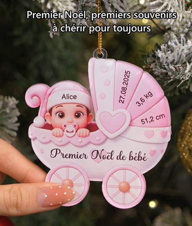 [Effet d'impression 3D] Ornement Acrylique Personnalisé - Premier Noël Poussette De Bébé