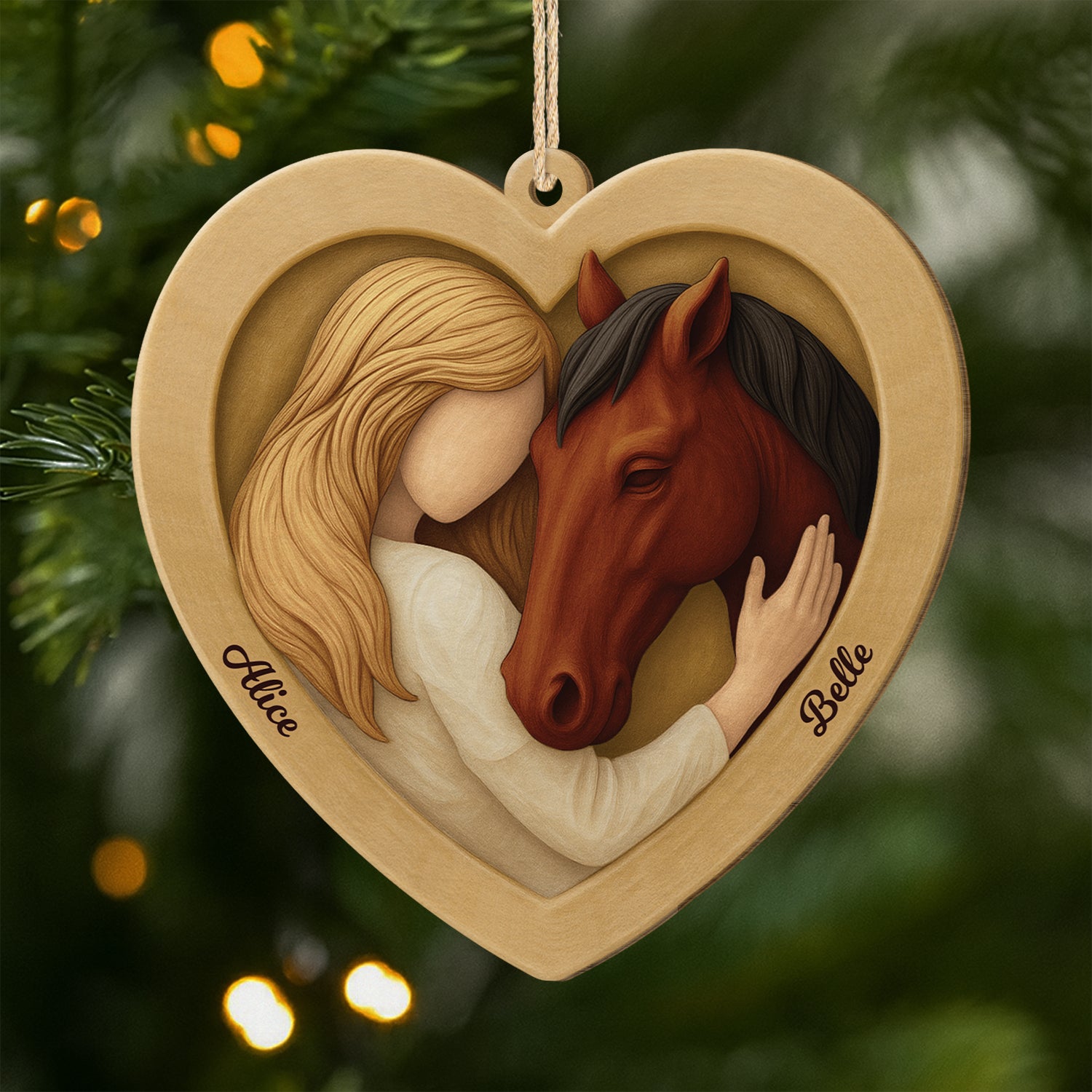 [Effet d'impression 3D] Ornement En Bois À 1 Couche Personnalisé - Fille Et Son Cheval