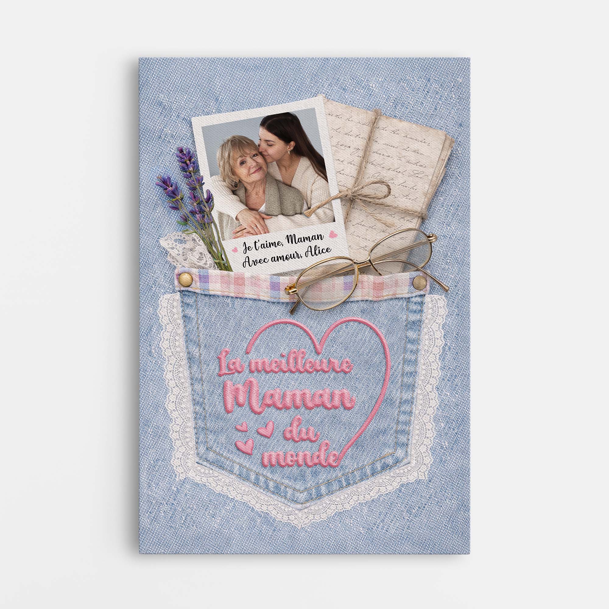 [Effet d'impression 3D] Toile Personnalisée Mamie Maman Avec Photo - Je T'aime Maman