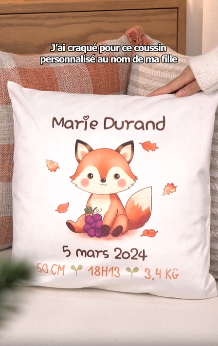 Enfant Renard Et Ses Informations - Coussin Pour Enfant Personnalisé