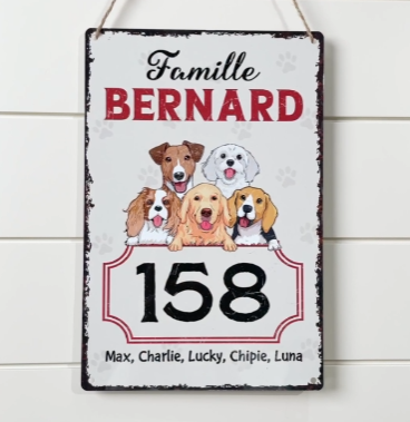Plaque numéro maison chien – Famille et toutou réunis