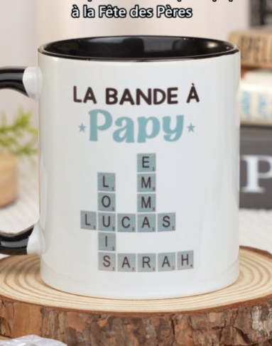 La Bande À Papy Version Bleue Avec Mots Croisés - Mug Pour Papy Personnalisé