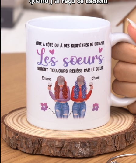 Les Sœurs Seront Toujours Reliées Par Le Cœur - Mug Personnalisé Meilleure Amie