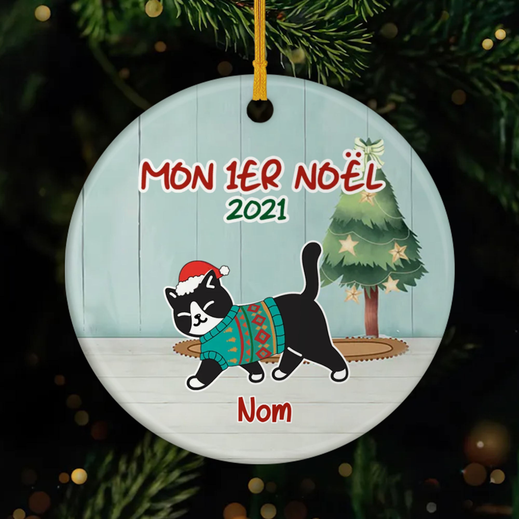 Cet ornement de Noël personnalisé "Mon 1er Noël" est le cadeau idéal pour marquer le tout premier Noël de votre minou. Parfait pour décorer le sapin et créer des souvenirs précieux à chaque réveillon.