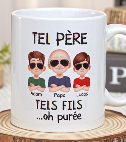 Mug Papa Personnalisé - Tel Père Tels Fils - Design Cartoon
