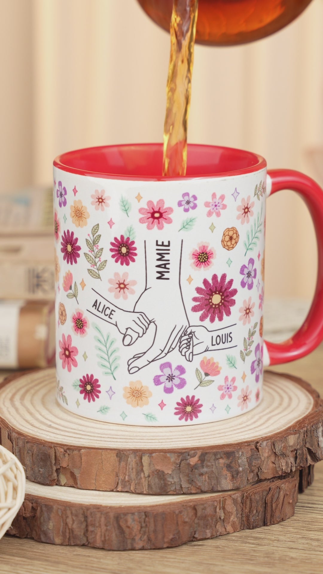 Mug Personnalisé - Maman - Version Pastel - Fleurs Dessin Crayon
