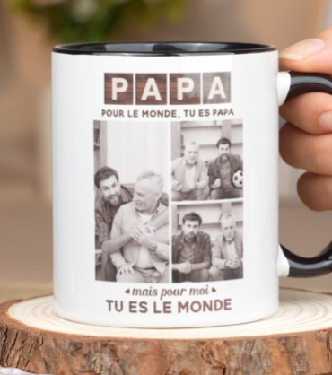 Mug Personnalisé Papa - Version Bois Avec Photos