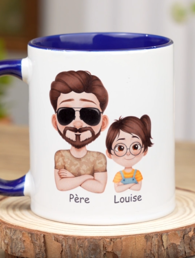 - Mug bicoloré avec l'intérieur et poignée colorés sur demande (noir, ciel bleu, marine, vert) et l'extérieur en céramique blanche.