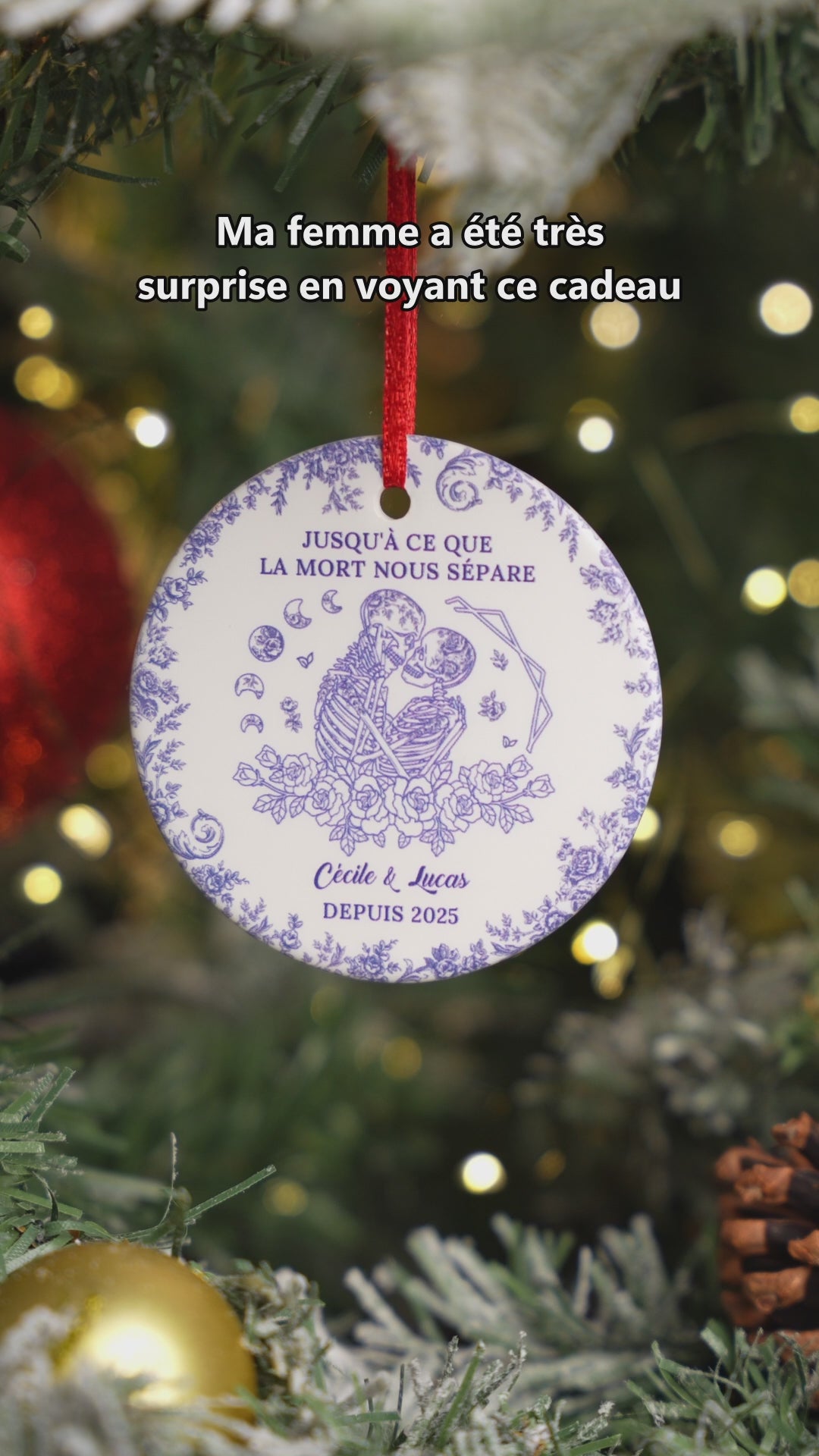 Offrez un ornement de Noël personnalisé qui symbolise l’amour éternel, parfait comme cadeau d’anniversaire de mariage ou souvenir romantique des fêtes. Cet ornement unique est conçu pour célébrer vos plus beaux instants de vie et marquer vos moments inoubliables avec élégance.