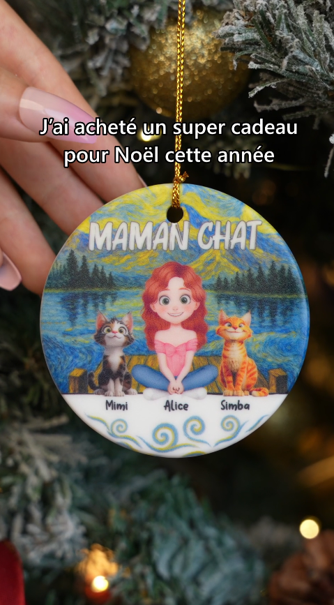 Ornement Noël personnalisé – un souvenir magique pour maman et son chat