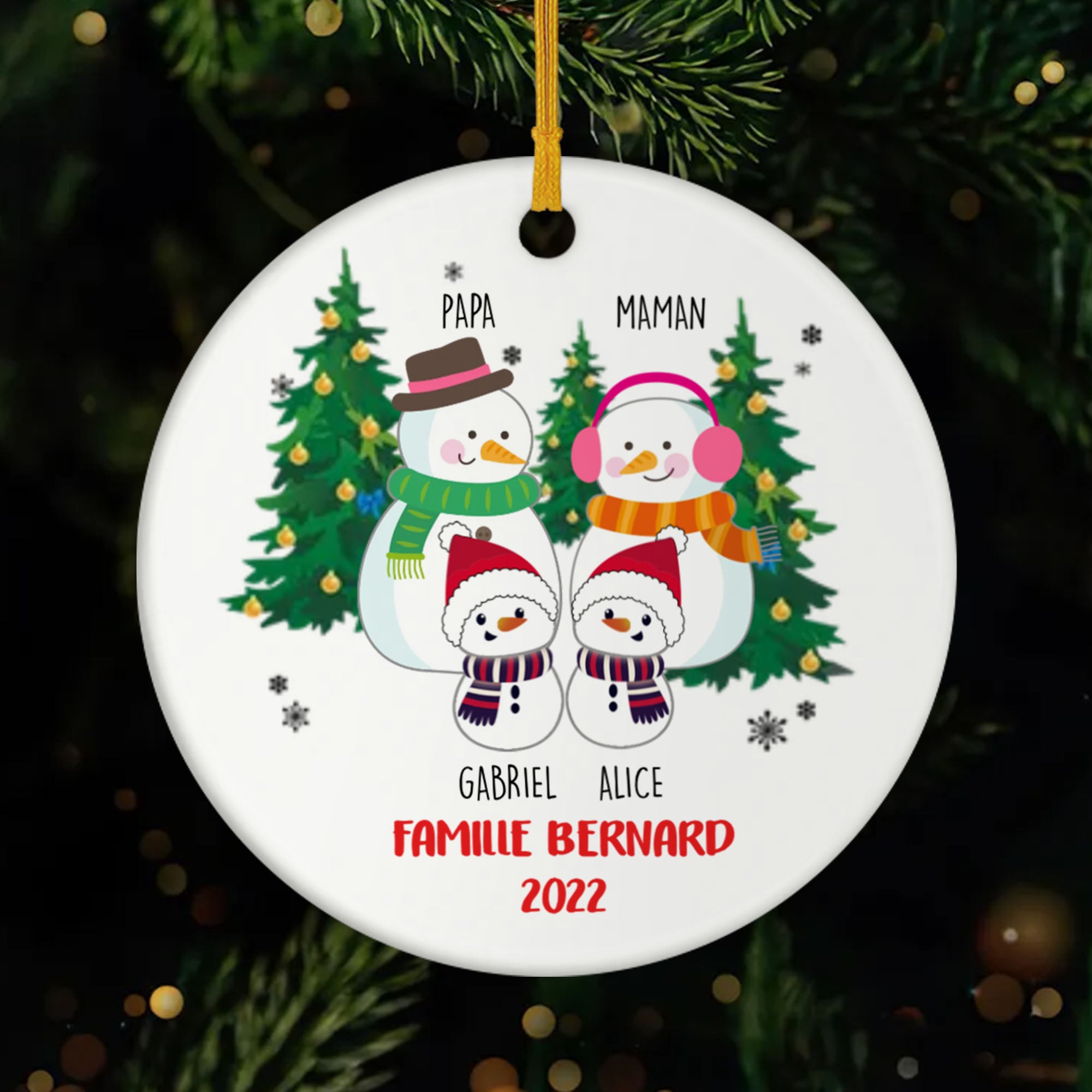 Ornement de Noël Famille Bonhomme de Neige Personnalisé