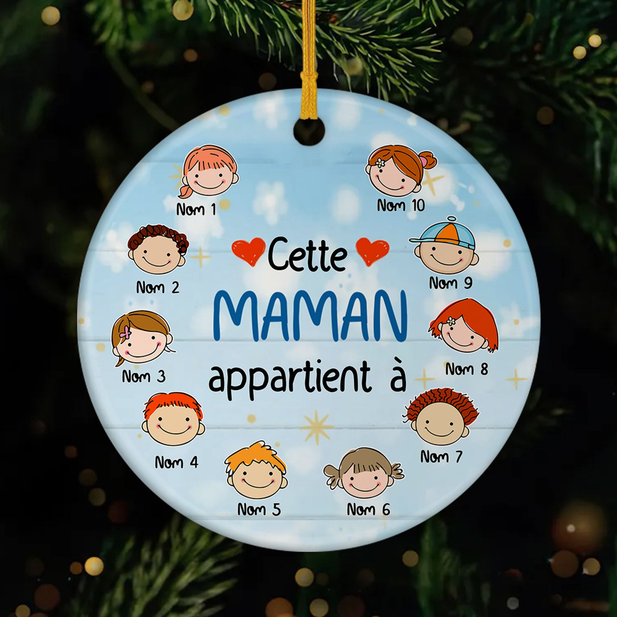 Offrez à votre maman un ornement de Noël personnalisé pour illuminer le sapin avec une touche d’amour et de reconnaissance. Parfait pour la fête de Noël, ce cadeau unique célèbre le lien précieux entre une mère et ses enfants. C’est un souvenir symbolique qui réchauffe le cœur chaque année.