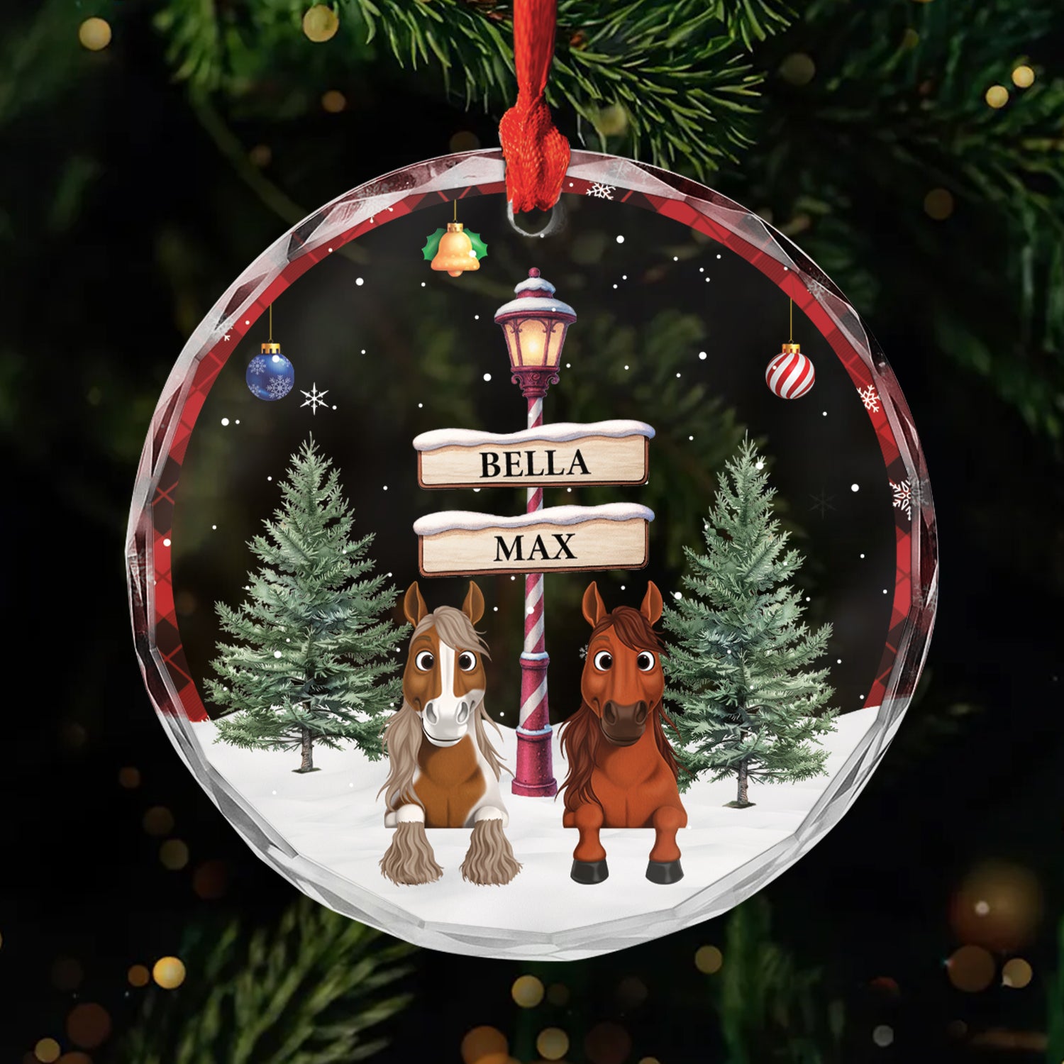 Ornement En Verre Personnalisé - Chevaux De Noël