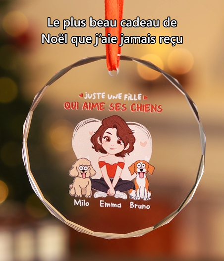 Cet ornement de Noël personnalisé est le cadeau idéal pour une femme qui aime les chiens et souhaite célébrer Noël avec ses fidèles compagnons. Accroché au sapin, il devient un souvenir unique et plein de tendresse à ressortir chaque année.