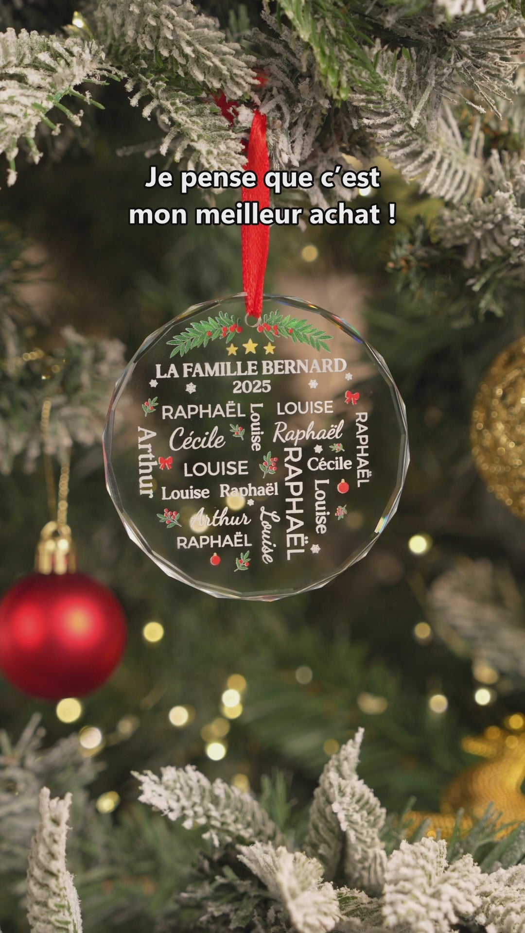 Offrez un ornement personnalisé et rendez votre décoration de noël pour le sapin encore plus unique. Ce cadeau plein de charme est idéal pour célébrer la magie des fêtes en famille et créer des souvenirs inoubliables.