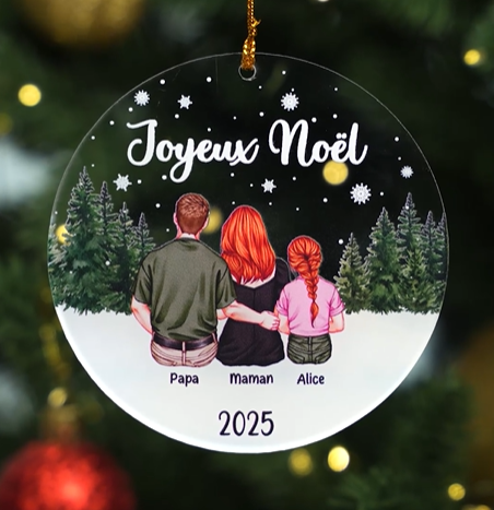 Cet ornement Noël personnalisé est le cadeau parfait pour rassembler famille et animaux de compagnie autour de l’esprit des fêtes. À offrir ou à accrocher fièrement dans le sapin, il incarne tendresse, joie et convivialité pendant la période de Noël.