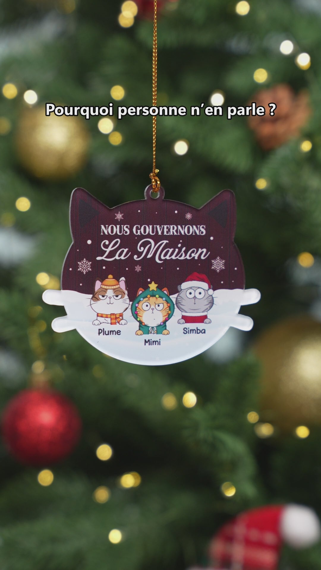 Cet ornement Noël personnalisé est un choix parfait pour célébrer la magie des fêtes avec humour et tendresse. Conçu pour les familles et passionnés de chats, il apporte une touche unique à votre sapin et devient un souvenir à chérir chaque année.