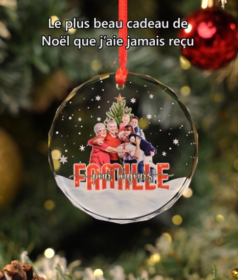Cet ornement personnalisé est le cadeau parfait pour célébrer l’esprit des fêtes en famille. À offrir ou à suspendre fièrement dans votre sapin, il immortalise vos plus beaux souvenirs. Grâce à sa touche unique de photo de famille, il devient un trésor à ressortir chaque année pour partager émotions et complicité.