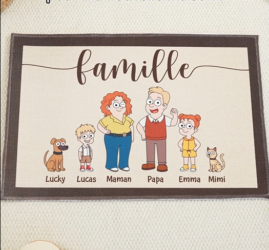 Ce paillasson personnalisé famille est une manière originale d’affirmer votre identité familiale dès le pas de la porte. Pratique et chaleureux, il allie utilité quotidienne et touche personnelle.
