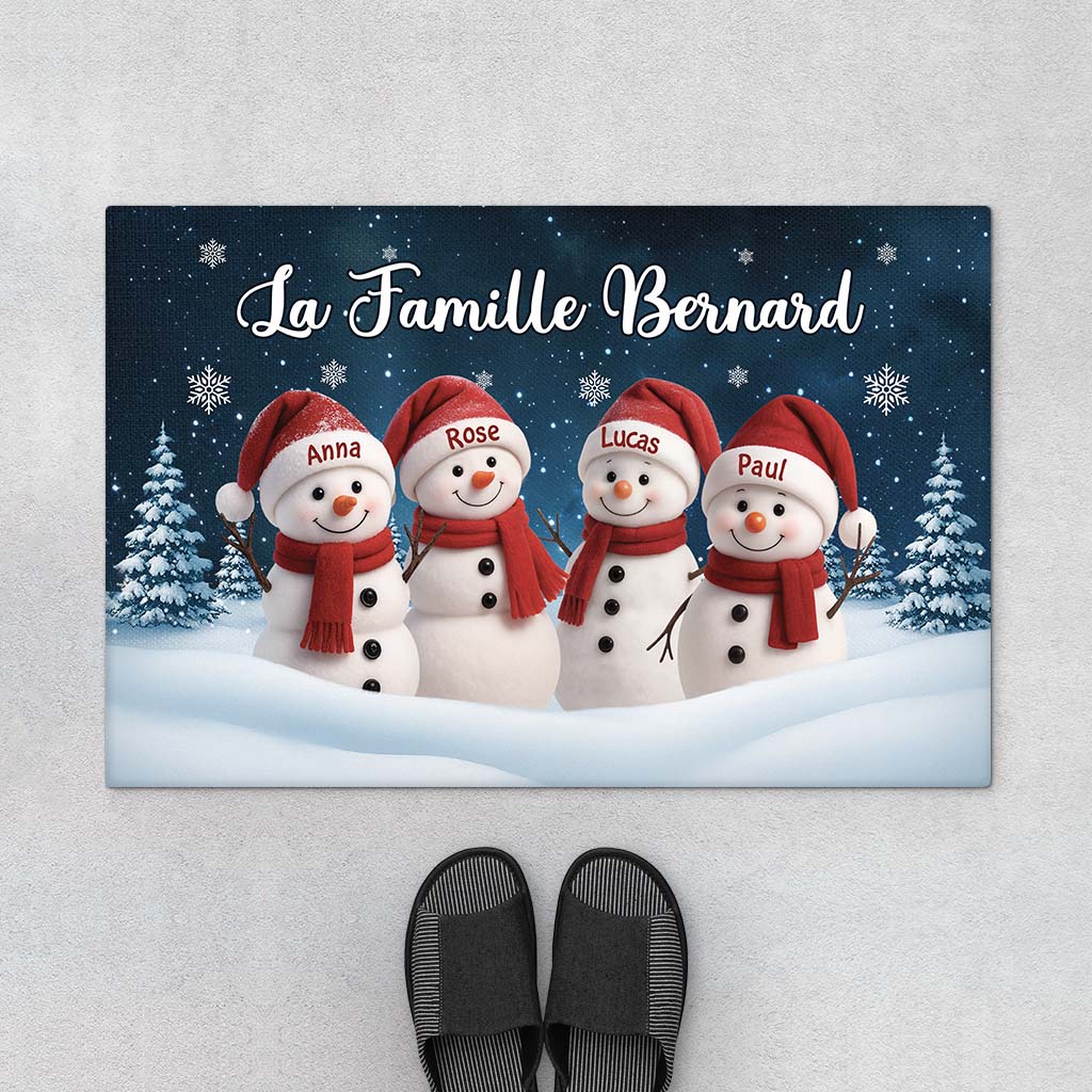 Paillasson Personnalisé Famille - Bonhomme De Neige De Noël