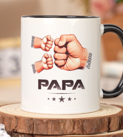 Papa/Papy Bosses De Poing Avec Mains - Mug Personnalisé Pour Homme
