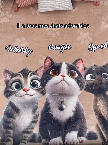 Ajoutez une note ludique et chaleureuse à vos moments cocooning avec ce plaid personnalisé au design cartoon. Un must-have pour tout passionné de chats !