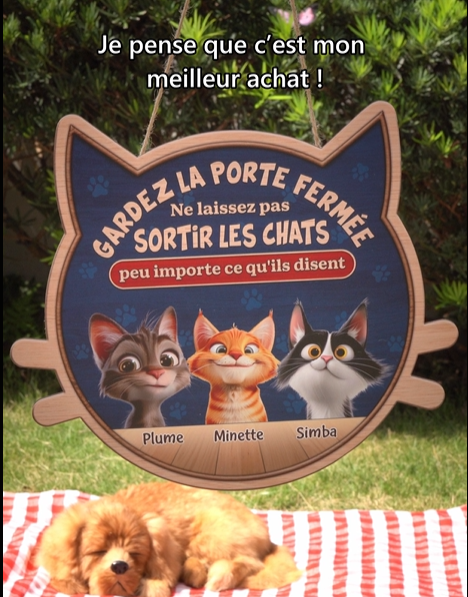 Plaque En Bois Personnalisée Avec Chat À Suspendre - Gardez La Porte Fermée
