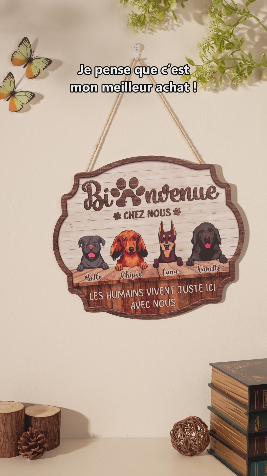 Plaque En Bois Personnalisée Avec Chien Rigolo À Suspendre - Bienvenue Chez Nous