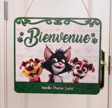 Plaque En Bois Personnalisée - Bienvenue - Version Chien Malin