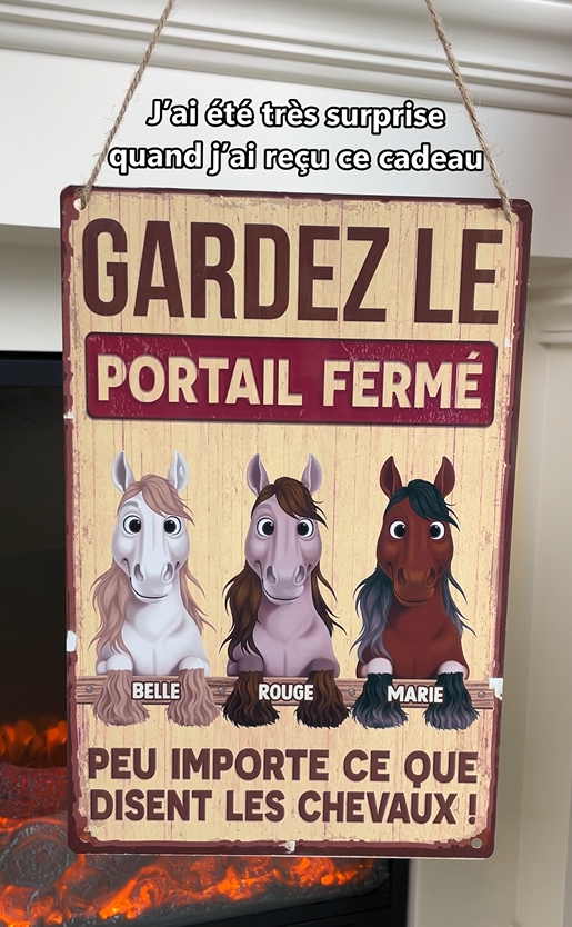 Plaque En Métal Personnalisée Avec Cheval - Gardez Le Portail Fermé