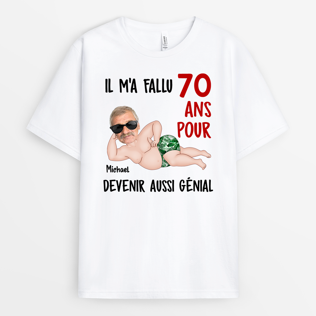 T-shirt Personnalisé Femme/Homme - 70 Ans Pour Devenir Aussi Génial